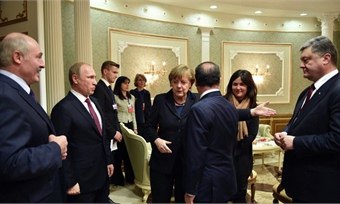 Документ, который был разработан на встрече лидеров Украины, России, Франции и России, был передан на рассмотрение и визирование контактной группе. Для этого на заседание группы прибыли лидеры самопровозглашенных Донецкой и Луганской народных республик Александр Захарченко и Игорь Плотницкий, а также помощник президента России Владислав Сурков.