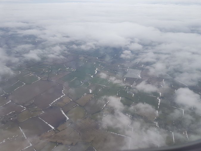 За окном иллюминатора тёмно-зелёные квадратики, разделённые грязно-белыми полосками. Мало похоже на Англию – там трава ярко-зелёная и никакого снега, а тут зелень не салатовая, не капустная, не фисташковая, а хвойного цвета, как будто весь остров засажен одними ёлками, да соснами.