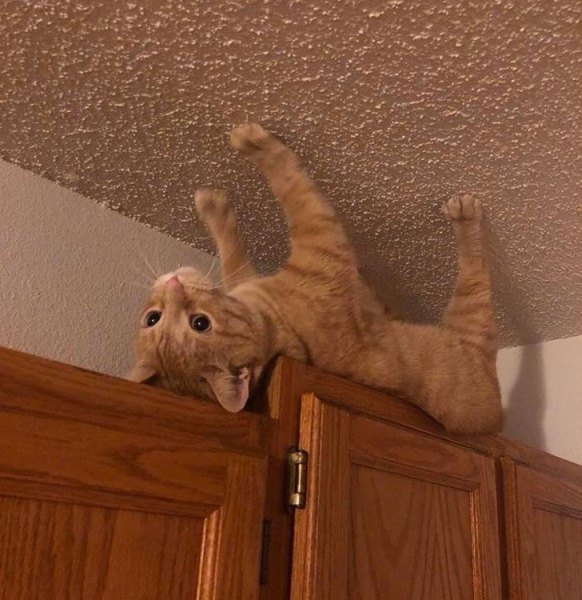 Ничего особенного. Просто ты не вовремя зашел. А твой кот проводил индивидуальную тренировку хождения по потолку.
