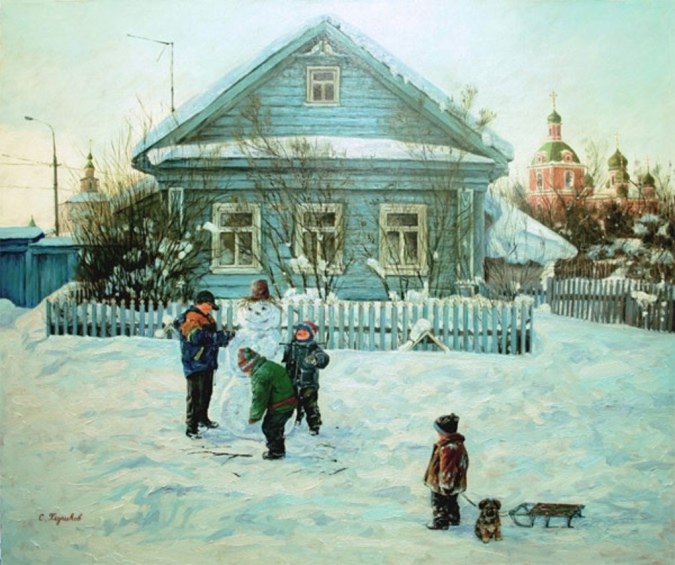 Фото: Художник Глушков Сергей. Снеговик, Зима в во дворе.Александр Аверин., cp14.nevsepic.com.ua, Baynton Maurade The Snowman, wallpaperstudio10.com, Ф.Сычков Лепка снеговика 1910, images.fineartamerica.com, w-dog.ru
