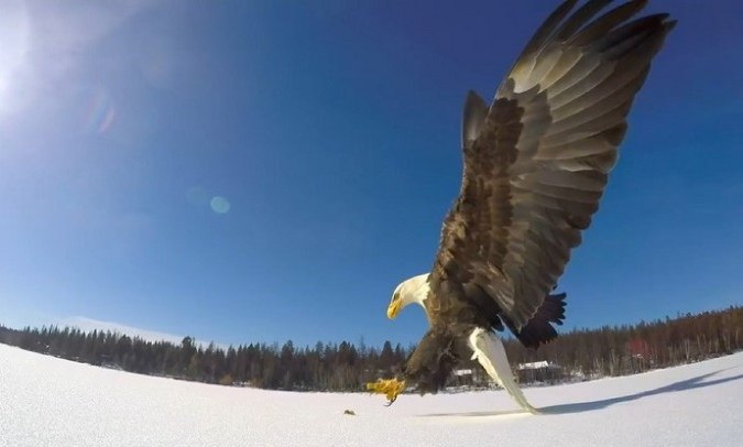 Как утвержлают специалисты, занимающиеся изучением птиц, случаи воровства рыб орлами у рыбаков весьма распространены. Для орлов это легкий способ достичь желаемого результата и они вовсе не гнушаются им воспользоваться в надежде избежать излишней траты времени и сил при добывании себе пищи. Еще один подобный случай произошел с рыбаками из Миннесоты. Они рыбачили зимой на замерзшем озере и заметили кружащего в небе белоголового орлана.