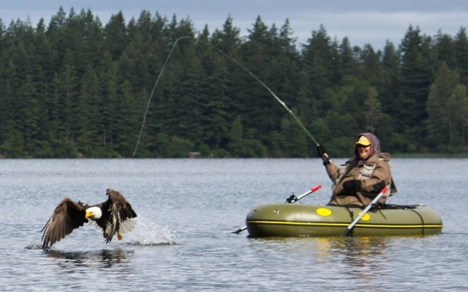 И такой трюк хищные птицы проделывают довольно часто. Так, канадский рыбак, ловивший рыбу в окрестностях Ванкувера, успел заснять, как орел украл у него рыбу. Он увидел, как птица кружила вдоль береговой линии, поэтому внутренний голос подсказал ему заранее достать камеру. Внезапно, ни с того ни с сего, орел начал движение к лодке канадского рыбака, которому лишь оставалось сделать любопытную фотографию.