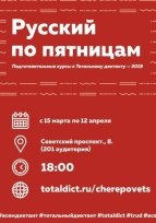 Курсы назвали «Русский по пятницам», и приглашаются на них все желающие. Первое занятие пройдет 15 марта в здании Череповецкого госуниверситета на Советском, 8 (аудитория 201). Начало в 18.00.