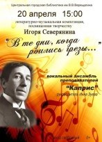 Королю поэтов Игорю Северянину посвятят в Верещагинской библиотеке литературно-музыкальную композицию.