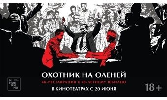 С 20 по 23 июня на большие экраны возвращается амбициозная и влиятельная антивоенная драма Майкла Чимино «Охотник на оленей». Фильм, новейшая 4К-реставрация которого была сделана в прошлом году к 40-летнему юбилею, демонстрируется на английском языке с русскими субтитрами. Фильм в Череповце будет показан в кинотеатре MORI CINEMA.