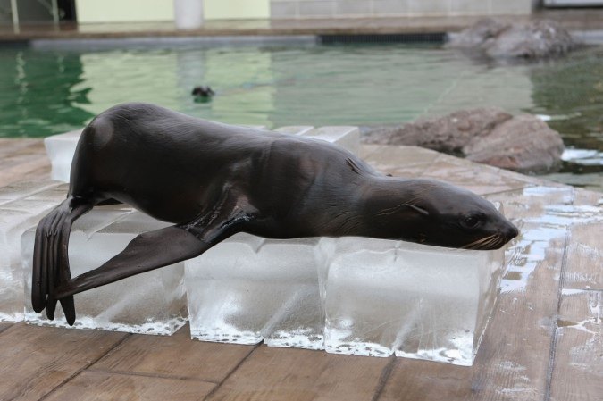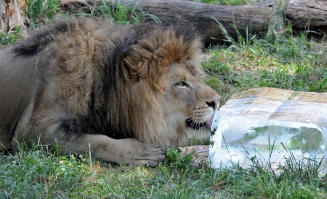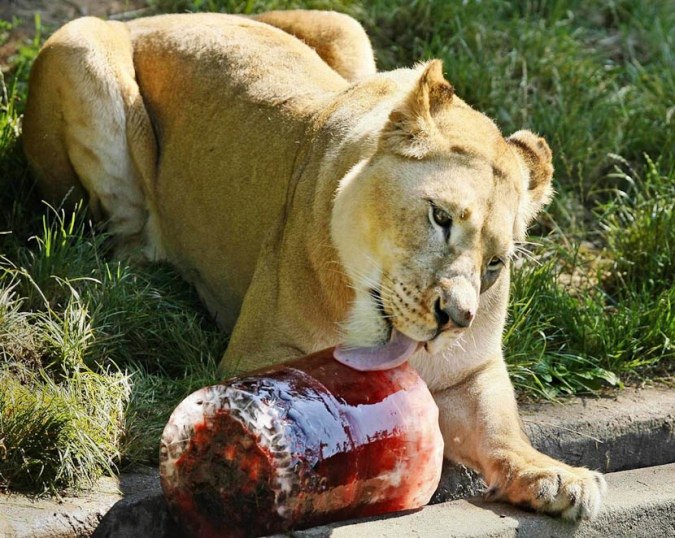 3. Эта львица из Национального зоопарка Вашингтона совмещает приятное с вкусным, поскольку «ледышка» с кровью!