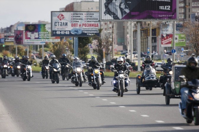 Закрытые мотосезона увенчалось уже ставшим традиционным мотопробегом по улицам нашего города. С двух часов дня байкеры начали собираться на парковке рядом с Ледовым дворцом, а в 15.00 кавалькада всадников на железных конях стройной колонной хлынула на улицы Череповца.