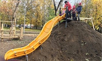 РИА Новости сообщает о «возведении» в Ярославле детской горки на большой земляной куче, которая после осадков размывалась в обычную грязь.