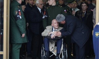 Церемония прощания состоялась вчера. Американец по-русски прочитал прощальное письмо первому человеку, вышедшему в открытый космос. Он назвал Леонова своим другом и коллегой.