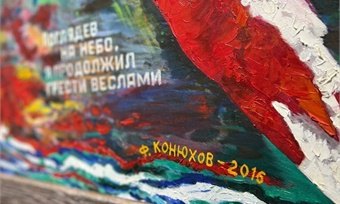 «Самый известный российский путешественник современности прославился не только своими экспедициями, но и талантом живописца. Федор Конюхов – автор более трёх тысяч картин, участник российских и международных выставок. Вдохновение для написания работ он находит в своих странствиях среди полярных льдов, океанских волн и горных вершин. Все свои впечатления, эмоции, переживания и открытия он, переосмыслив, выплеснул яркими красками на полотна. Увидеть картины Федора Конюхова череповчане смогут в Выставочном зале на Юбилейной, 36 до 24 января. В дни работы выставки в 12 и 15 часов для посетителей будут проводить бесплатные экскурсии», — написал мэр на своей официальной странице во «ВКонтакте».
