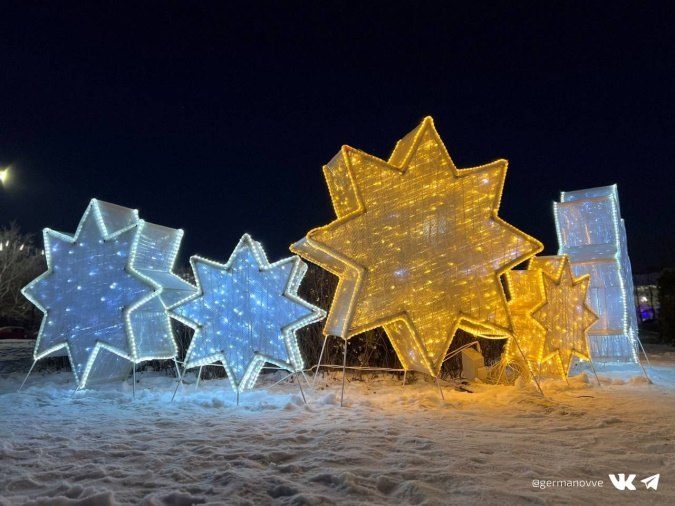 Начали монтировать украшения на месяц раньше. В самое тёмное время года праздничные украшения — светлое пятно, которое обязательно поднимет настроение по дороге на работу и обратно. Ёлки уже сверкают на площади у Дворца металлургов, у ДК «Северный», в парках КиО и 200-летия. В ближайшие две недели закончим всю подготовку Череповца к Новому году