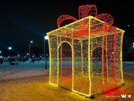 В городе металлургов в сквере на Годовикова установили новый арт-объект — светодиодный «подарок». Проект фигуры разработали специалисты предприятия «Электросеть». Изготовили её, а потом смонтировали, также сотрудники организации.